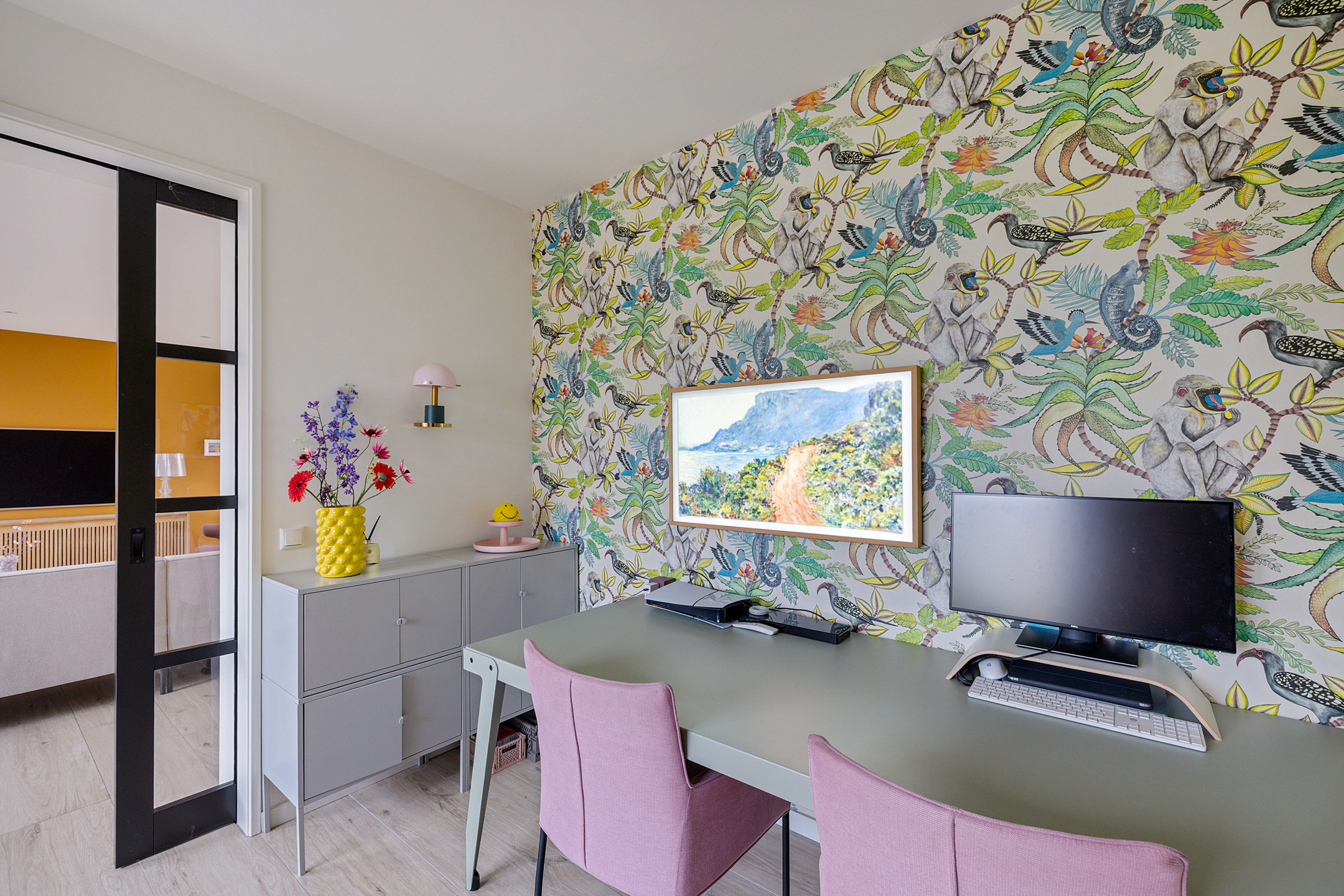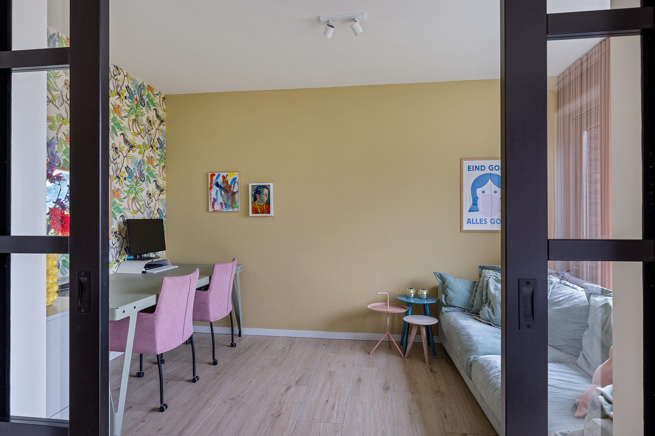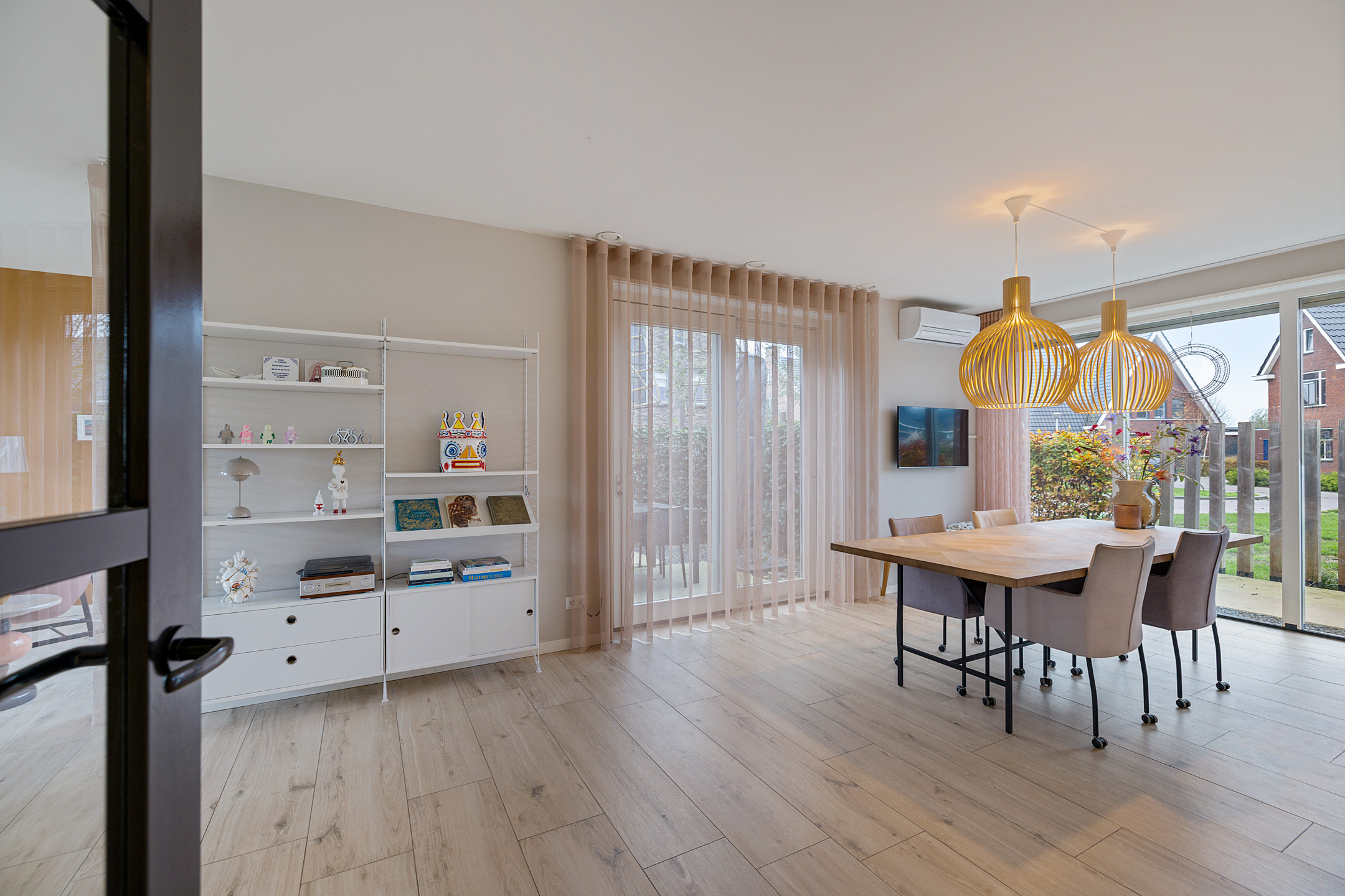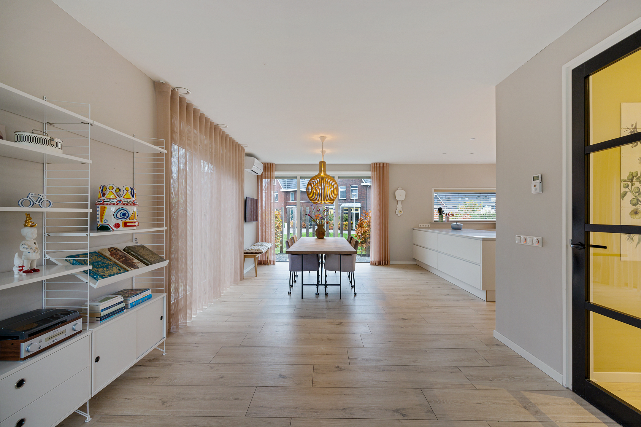 - ruime living, onderverdeeld in een woonkamer met schuifpui naar de achtertuin, een afsluitbare hobby-/werkruimte en fijne leefkeuken