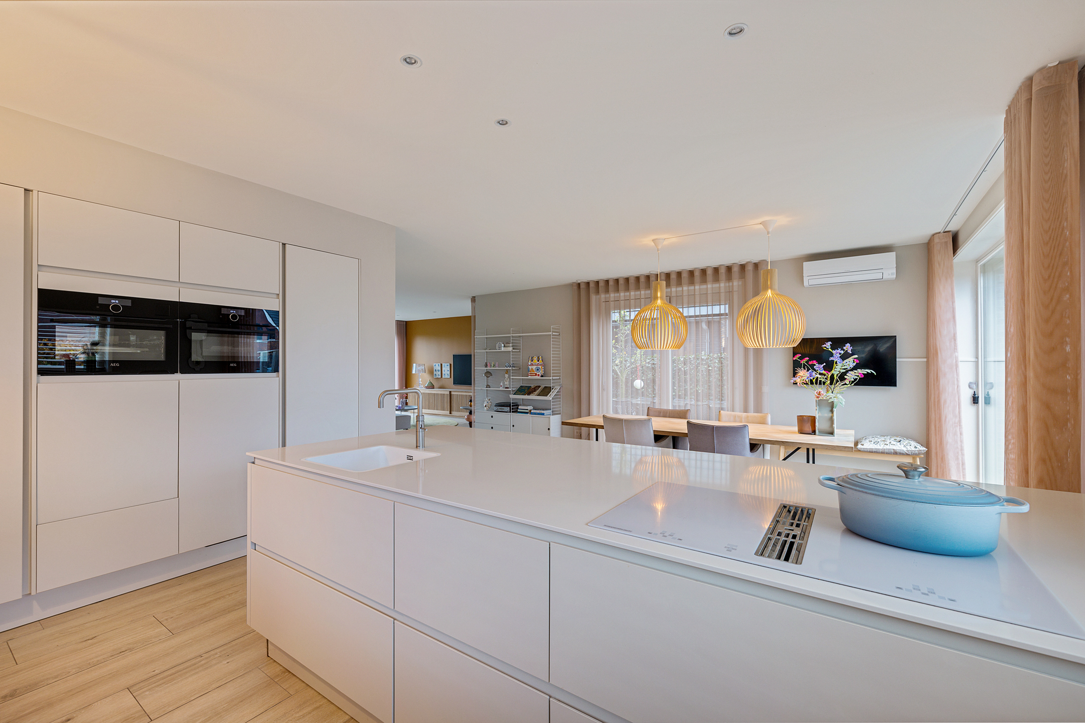 - inbouwapparatuur keuken: quooker, vaatwasser, stoomoven, combi-magnetron, elektrische kookplaat incl. afzuigfunctie, koelkast en vriezer