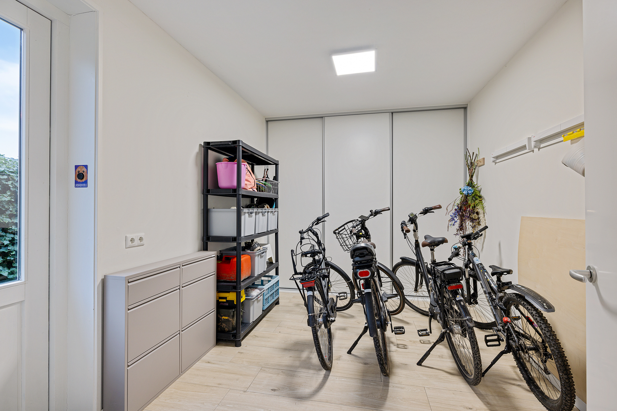 - bergruimte met een oppervlakte van circa 11,5 m² met tuindeur en inbouwkasten