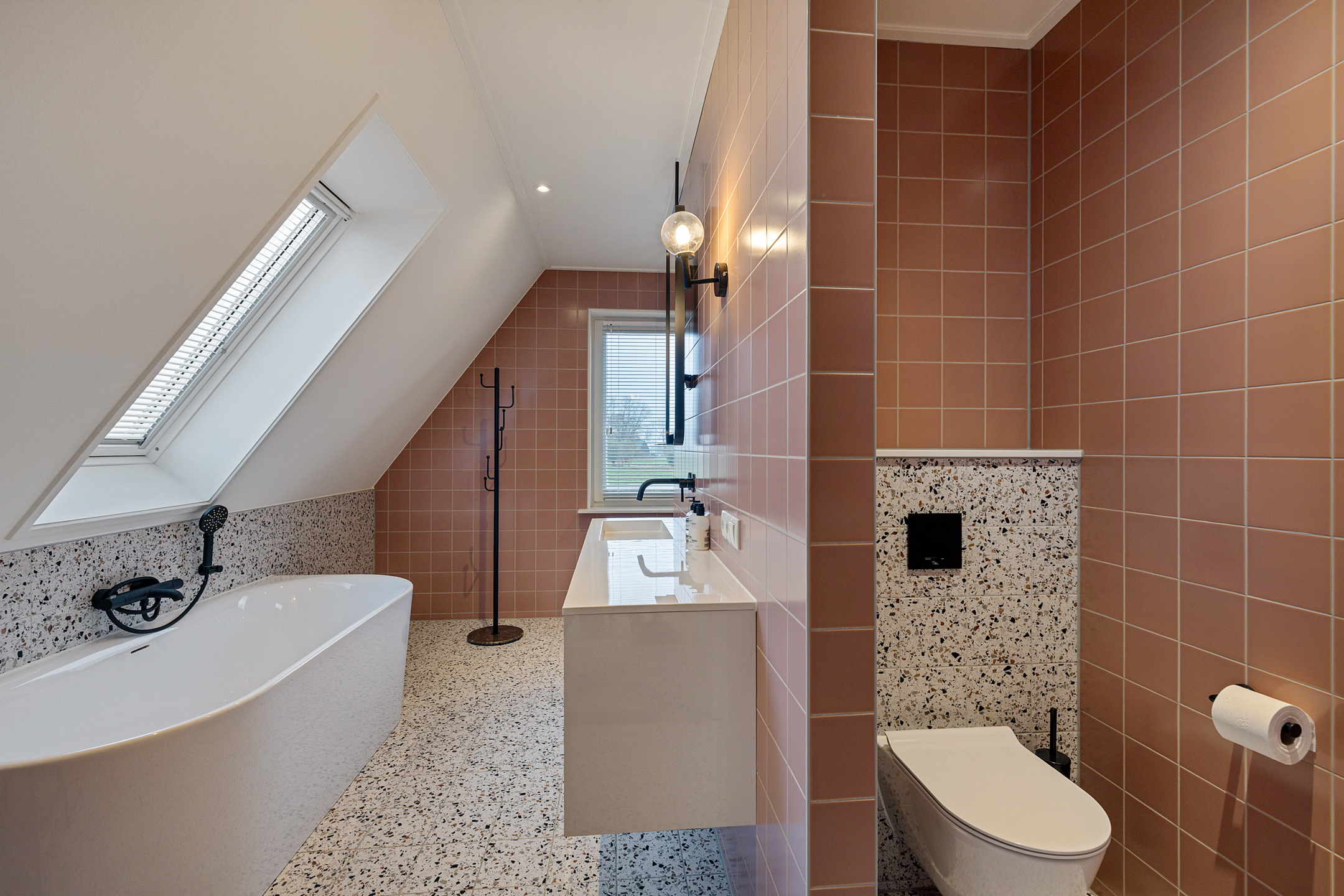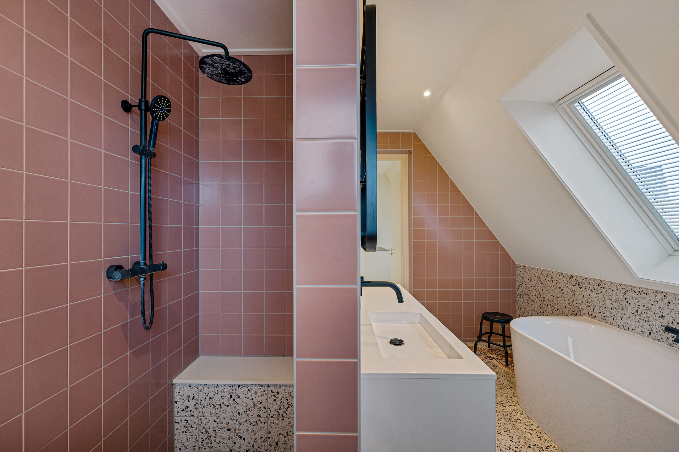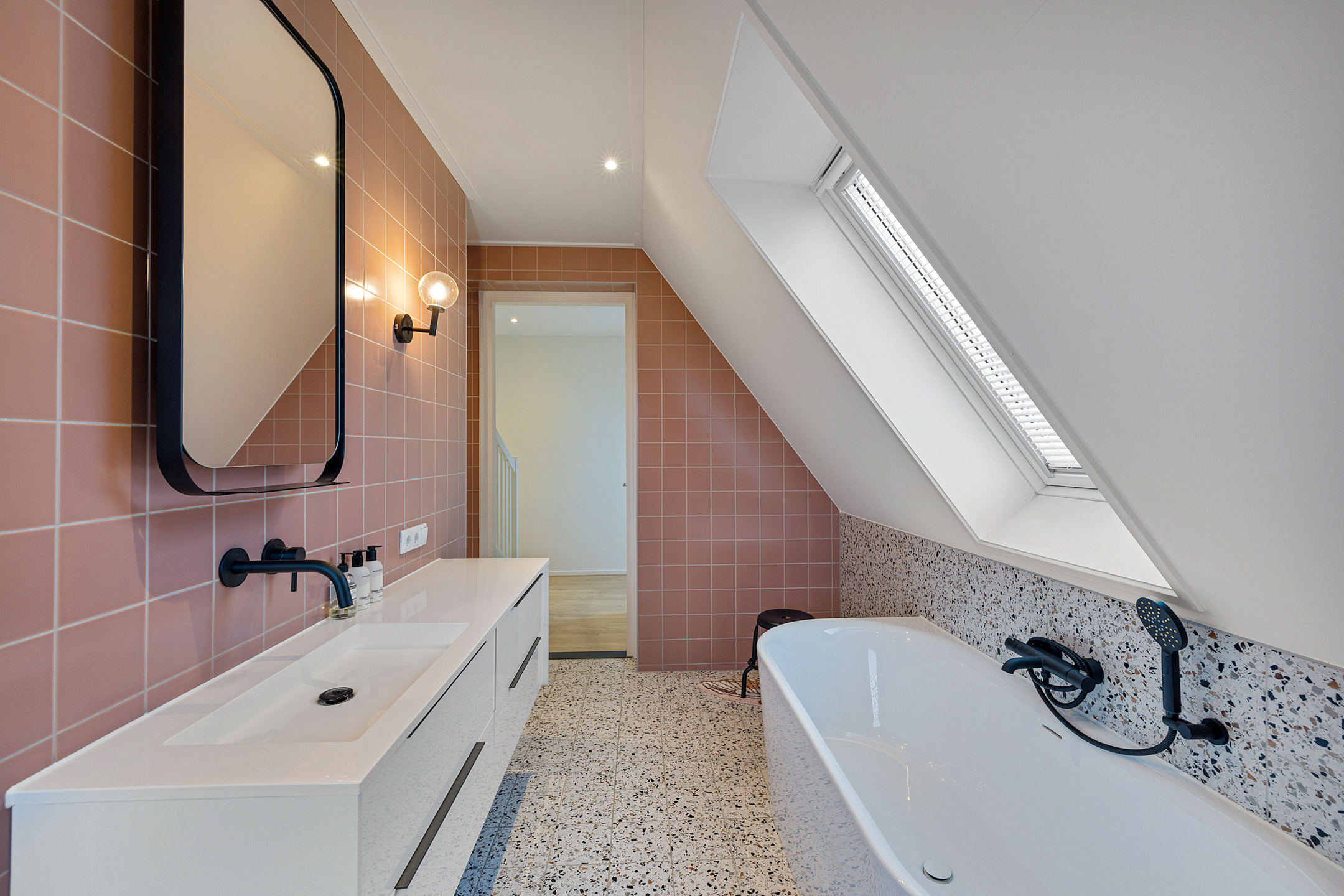- badkamer met ligbad, wastafelmeubel, toilet en inloopdouche