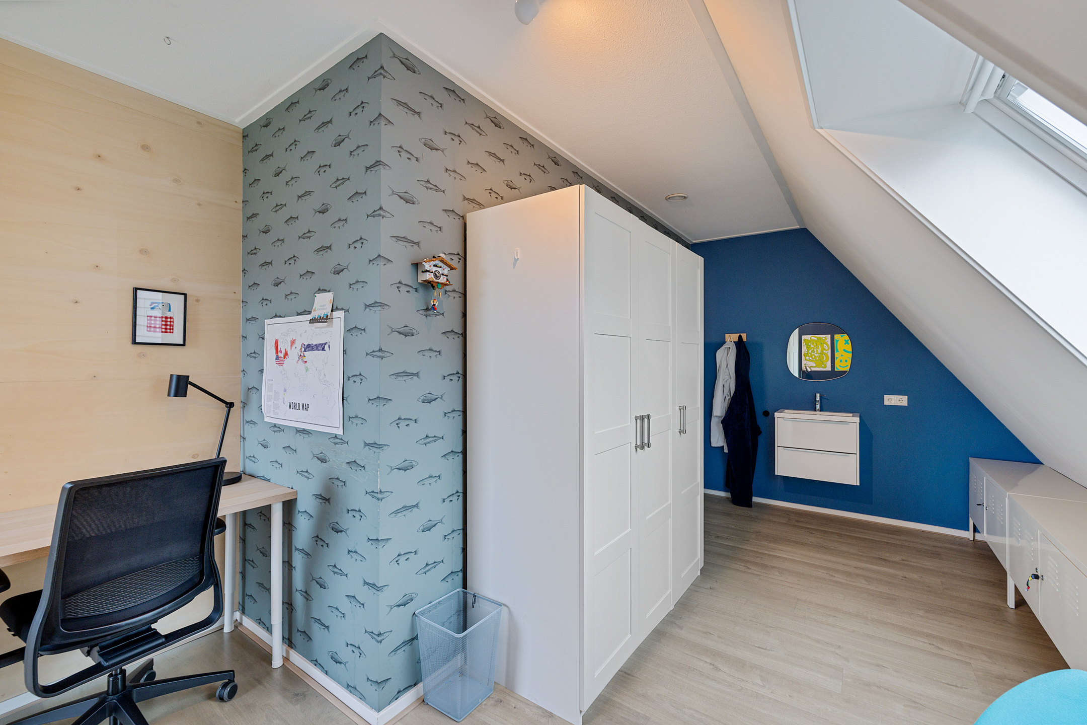 - vierde slaapkamer met een oppervlakte van circa 16 m², thans in gebruik als kantoorruimte