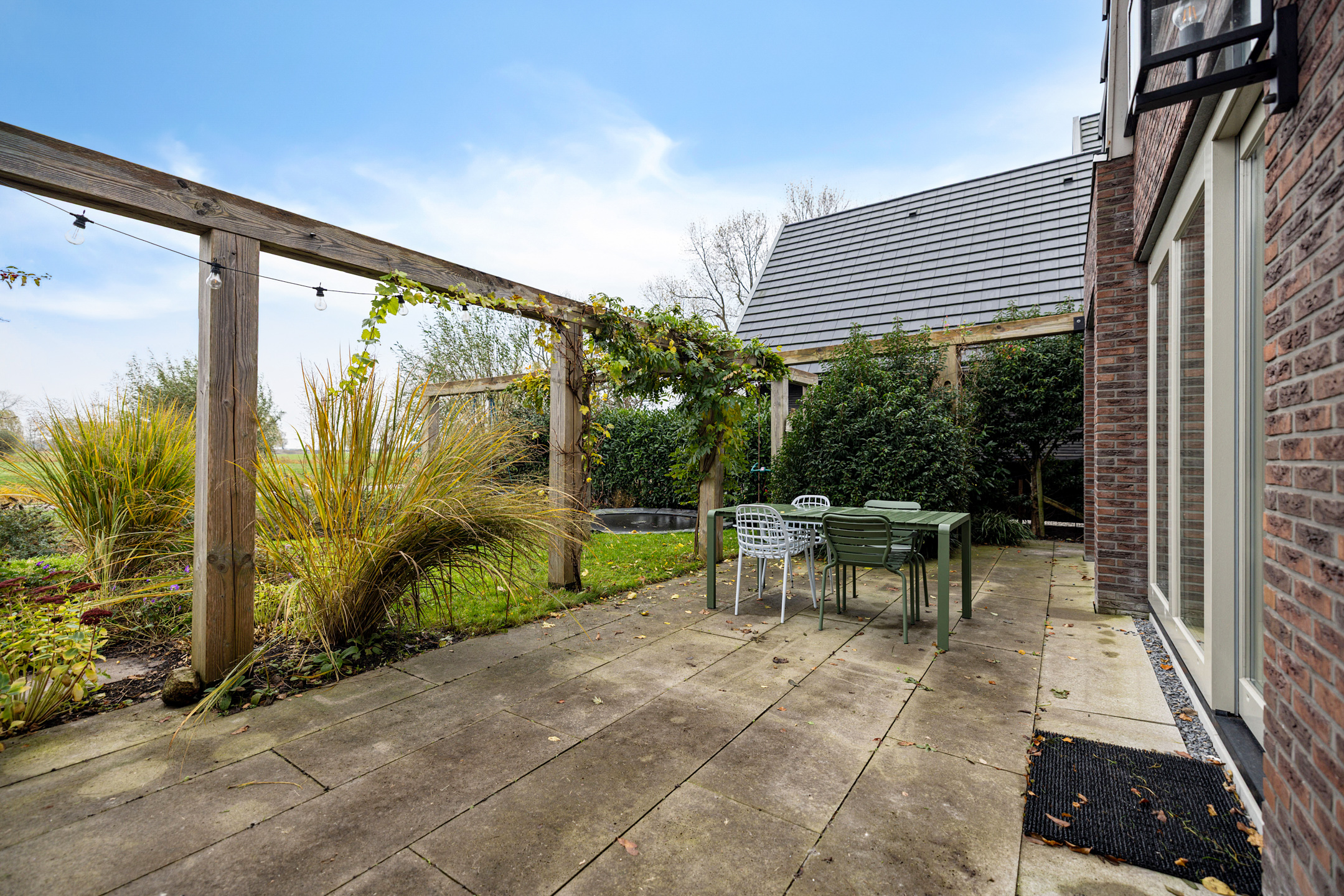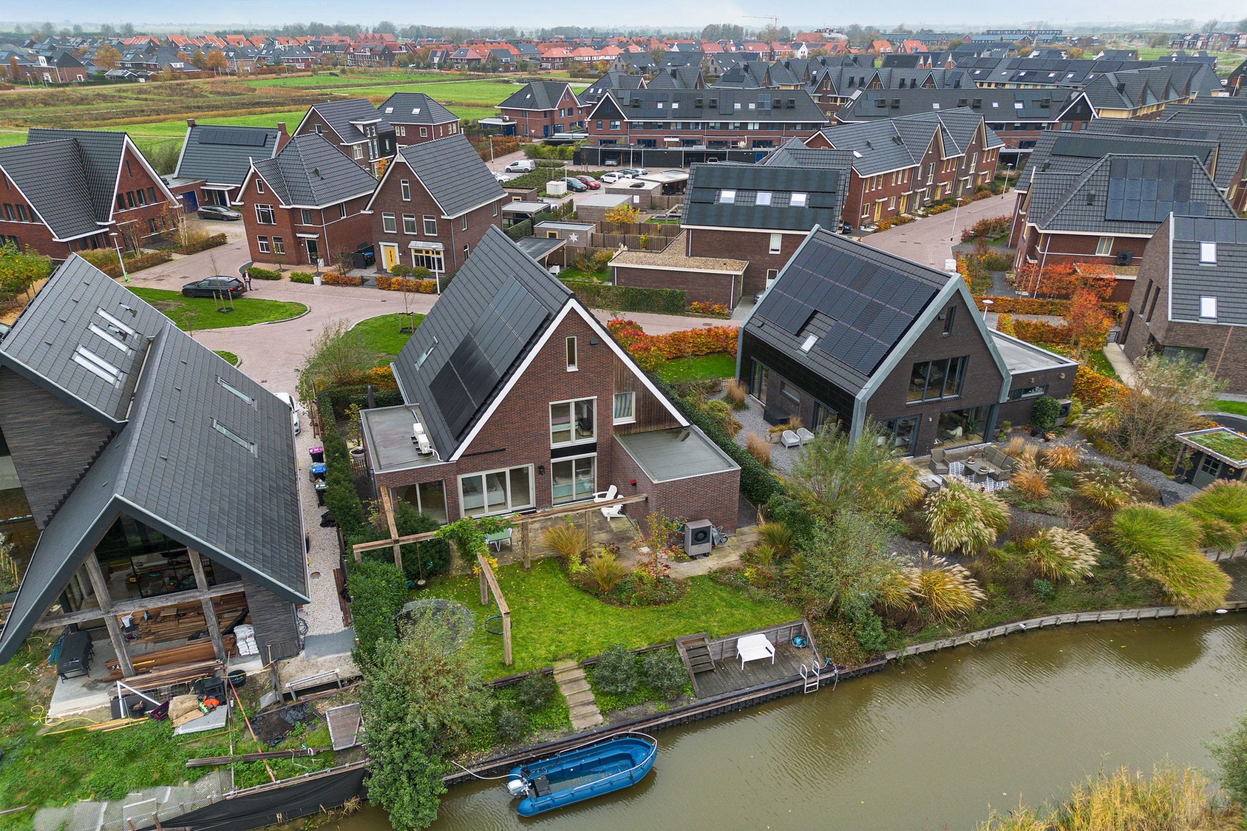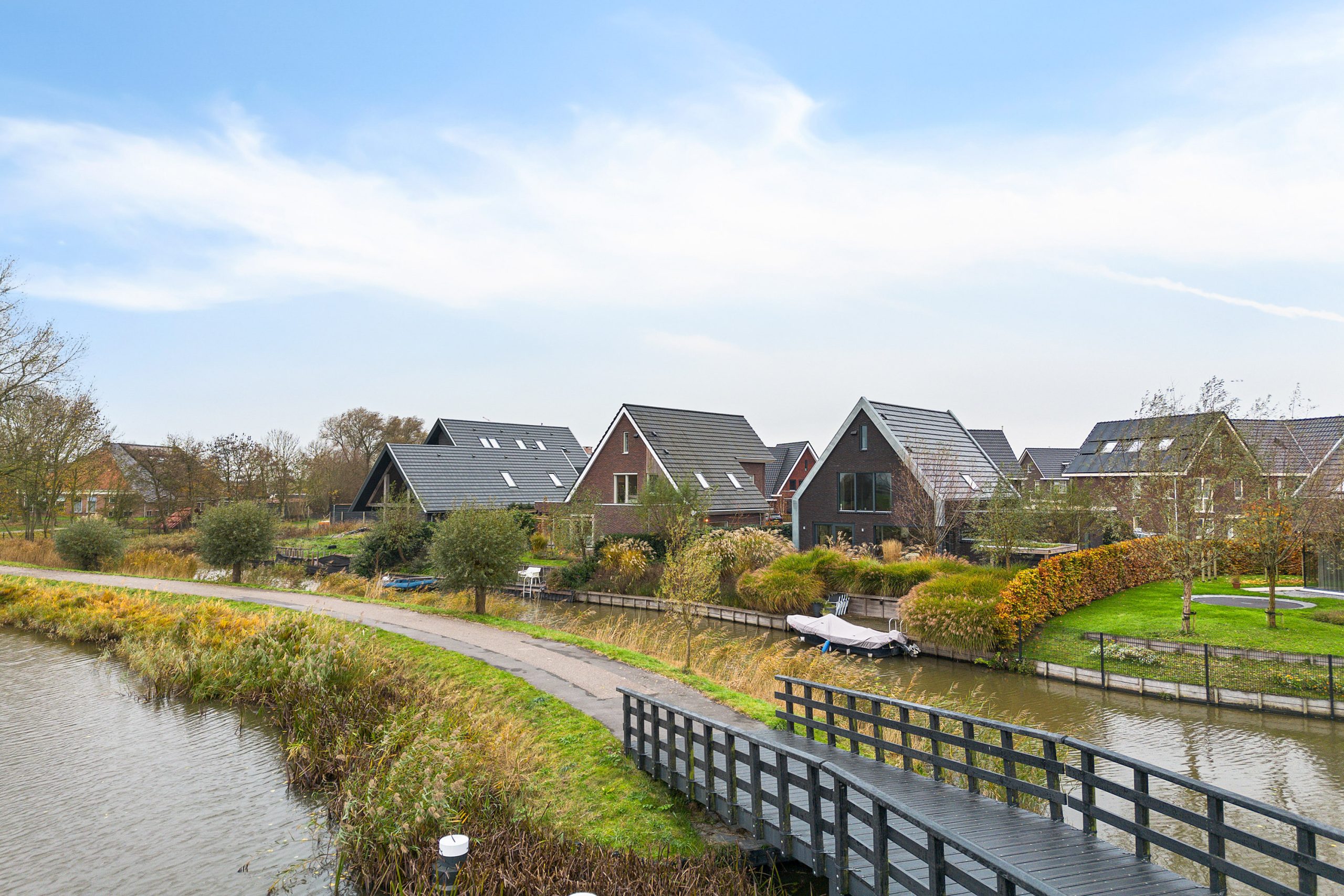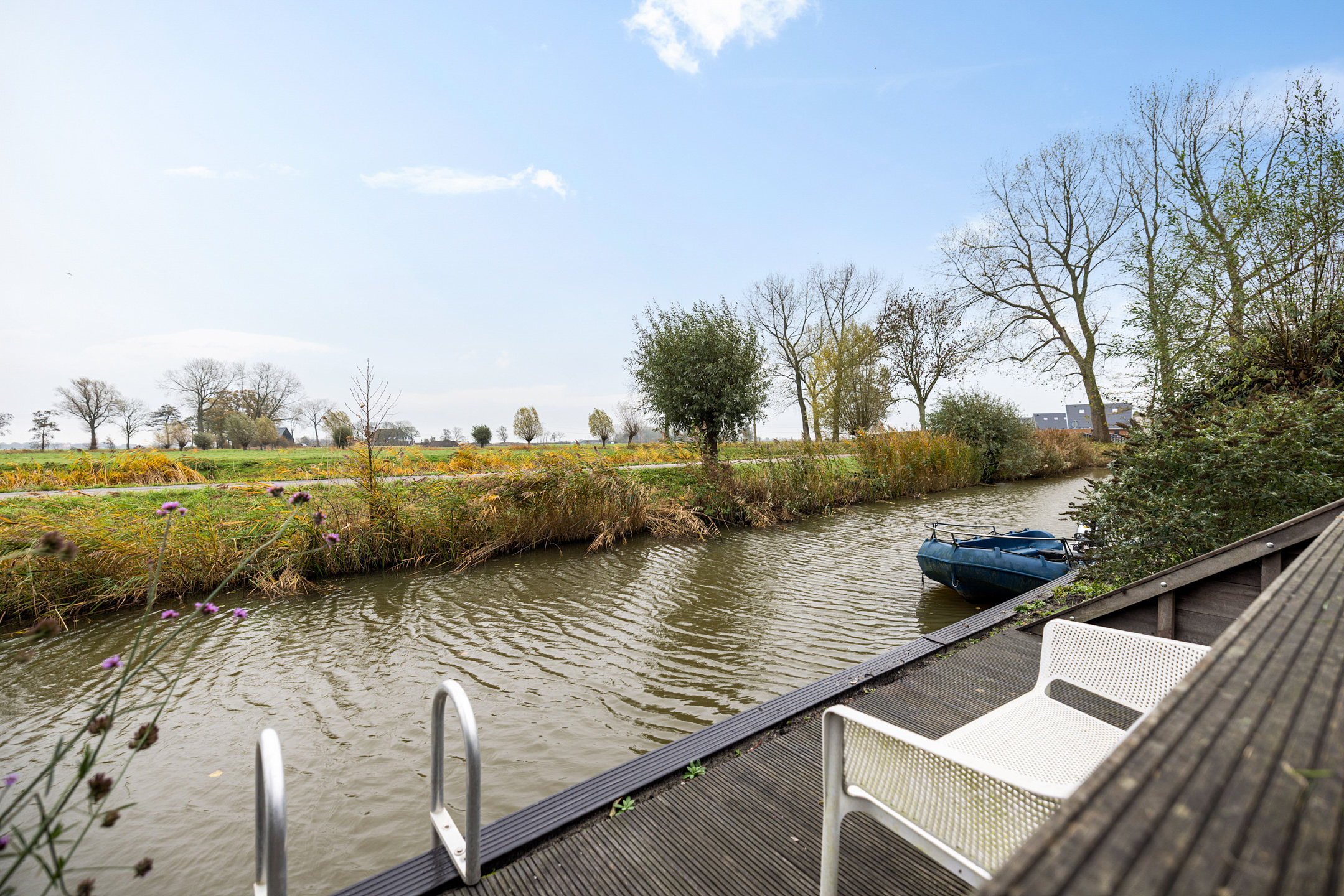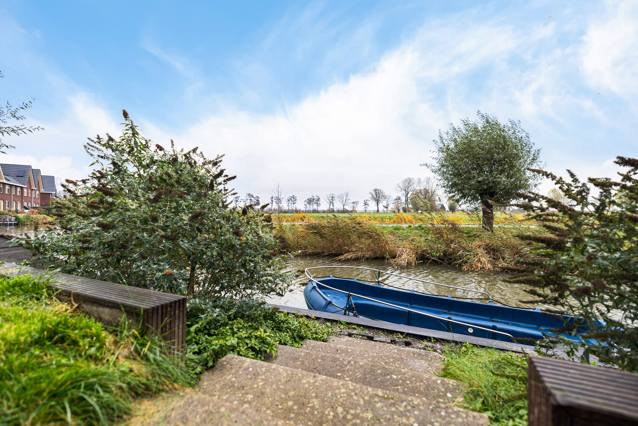 - de achtertuin heeft een oppervlakte van circa 166 m² en beschikt over een aanlegsteiger