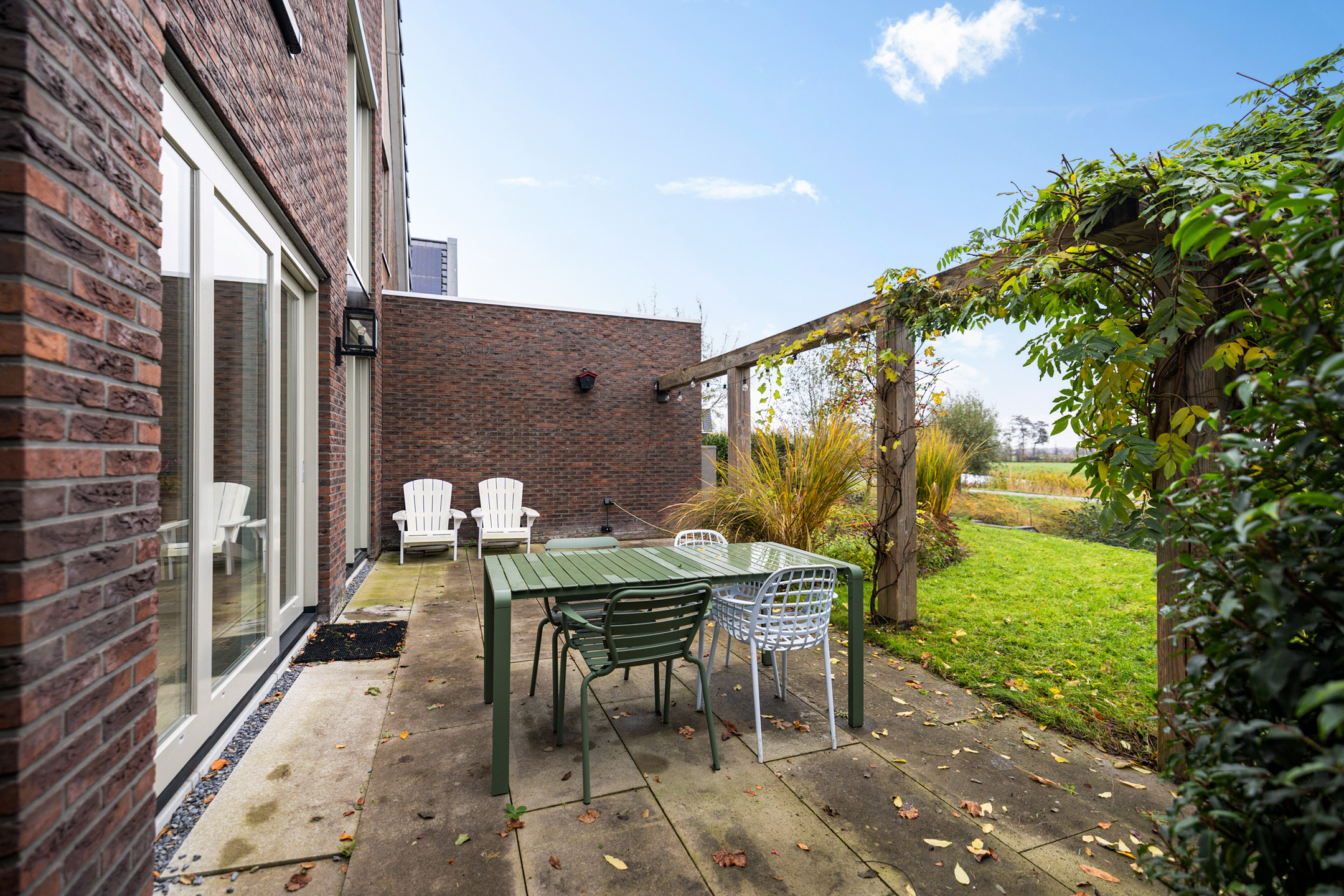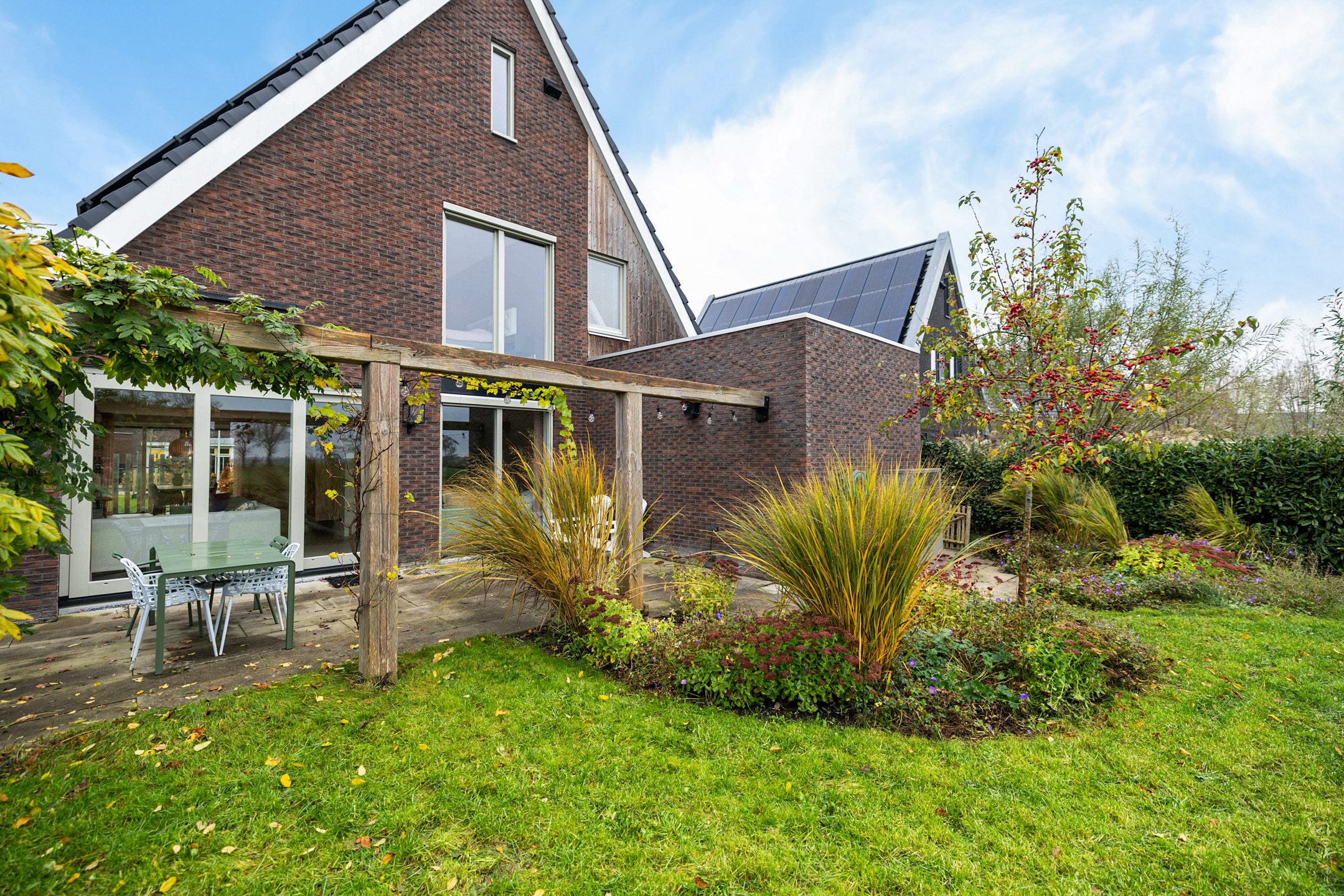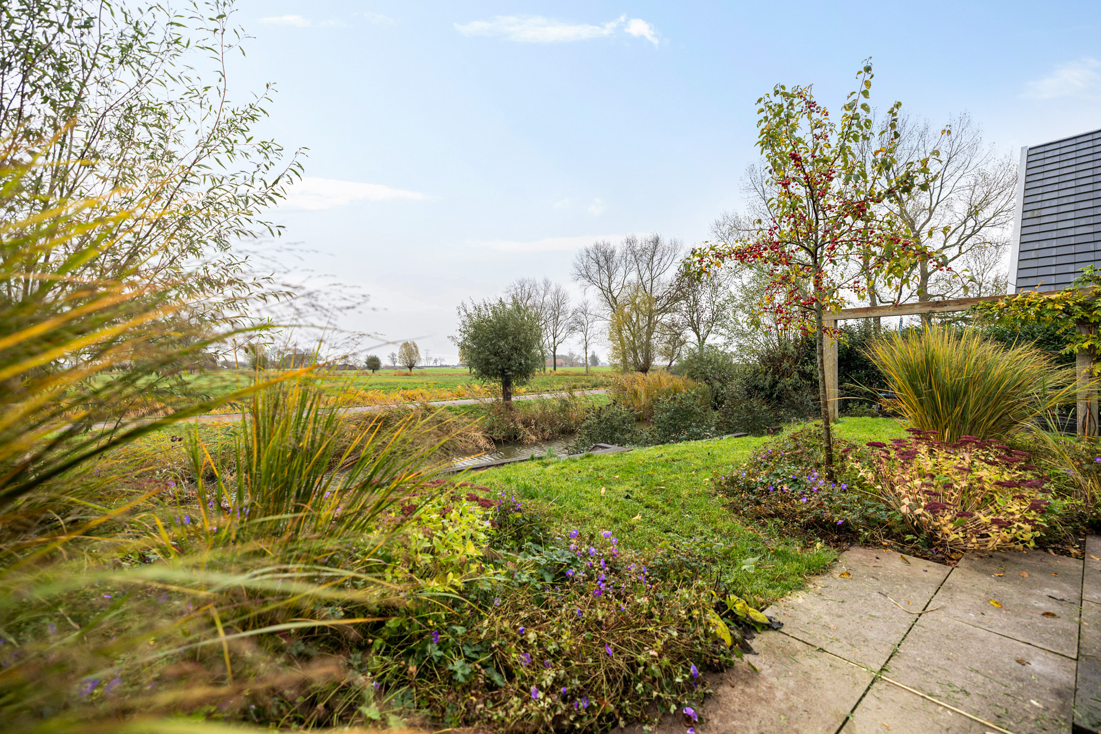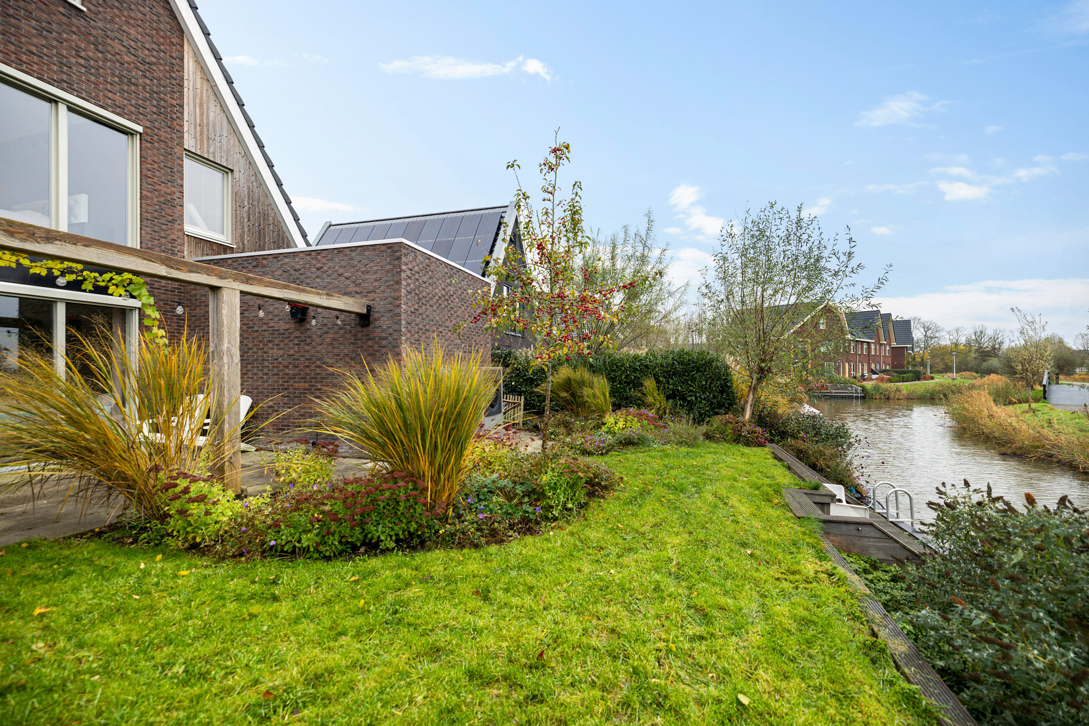 - fraai vormgegeven en aan open water gelegen achtertuin, gesitueerd op het oosten